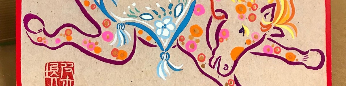 1 Year of the Horse Art Card, Blank Inside