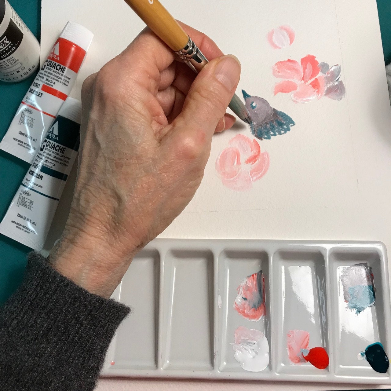 • Original Painting - (not a print) - 9 x 9-inches - using acrylic-gouache (gooWASH - an opaque watercolor), on 140lb watercolor paper