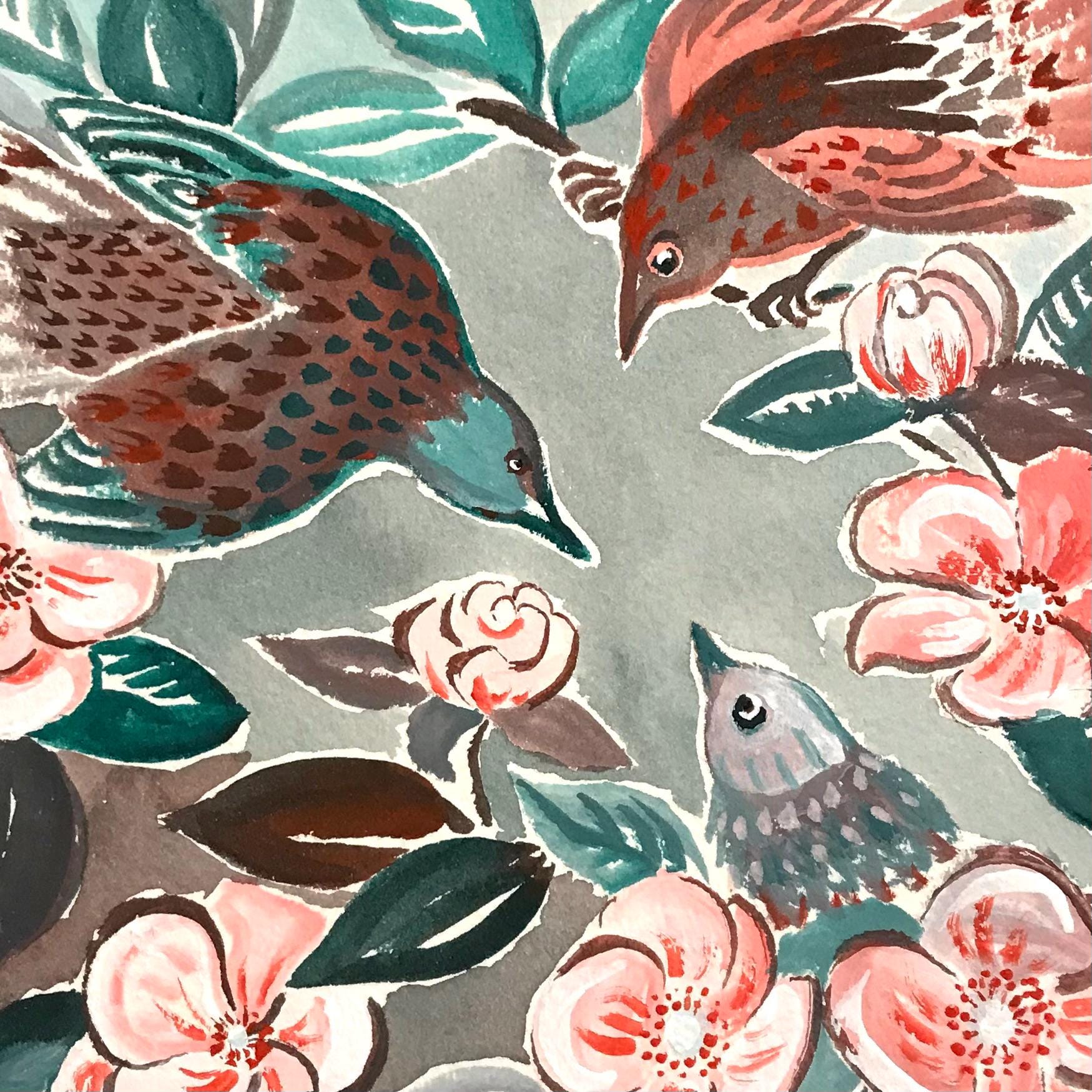 • painted birds, flowers & leaves are 7 x 7 inches, centered