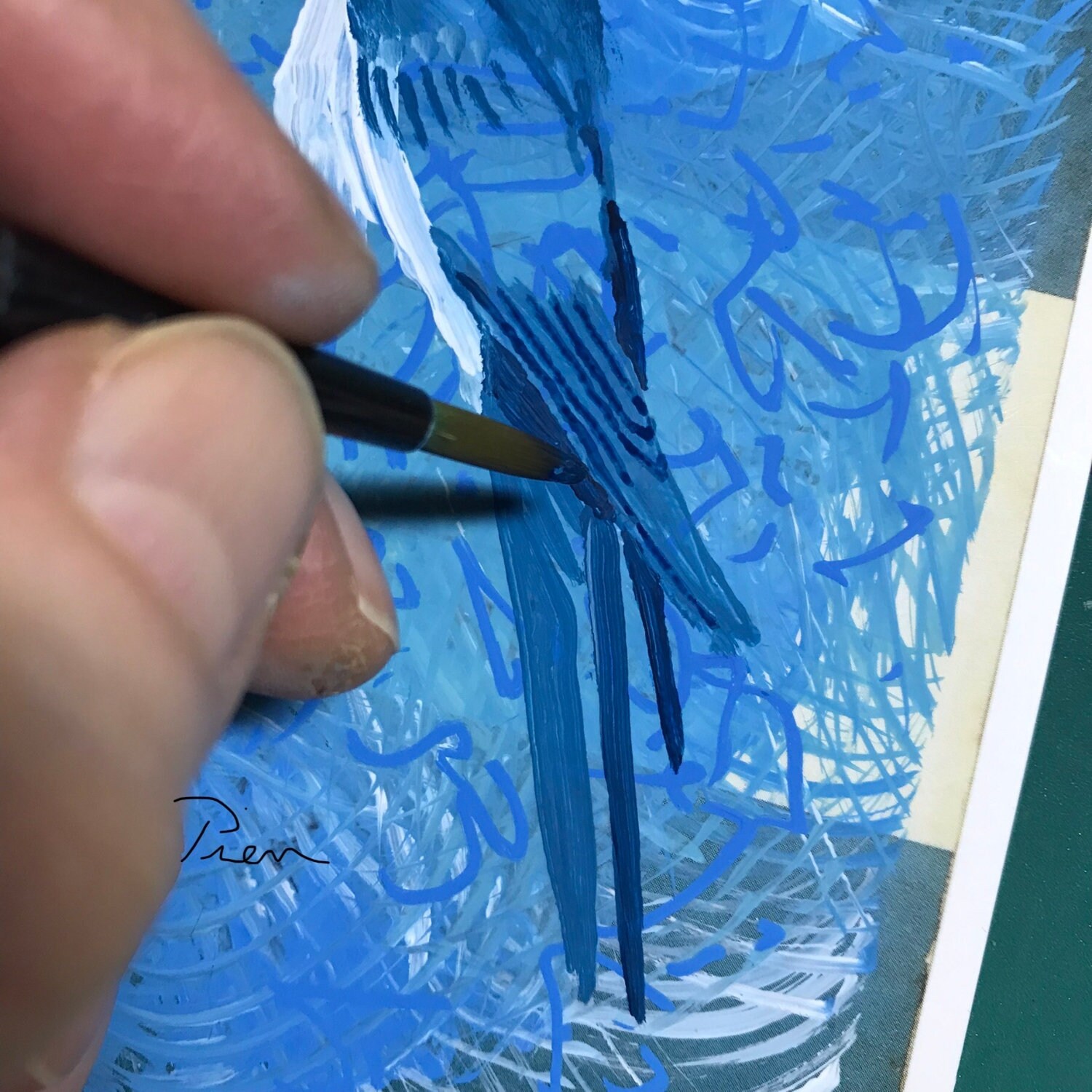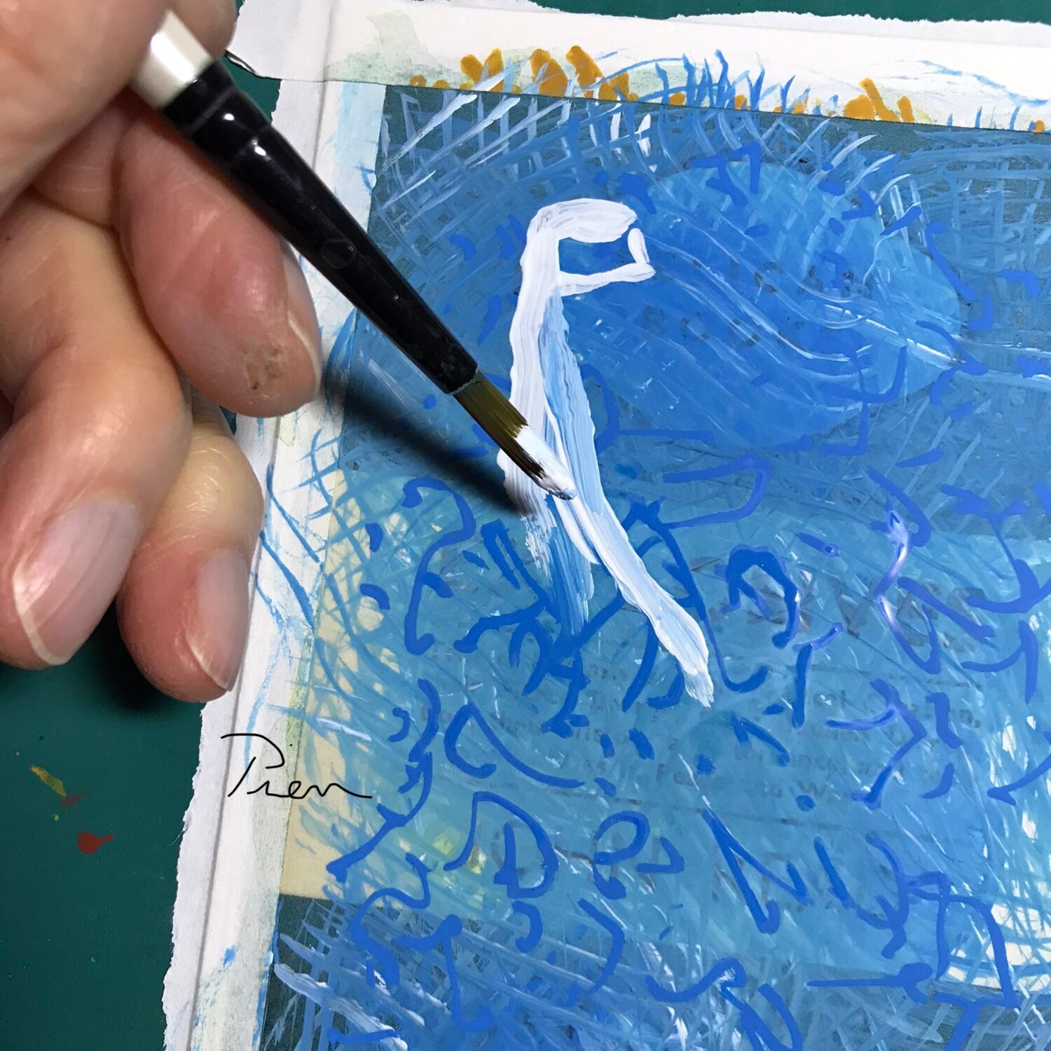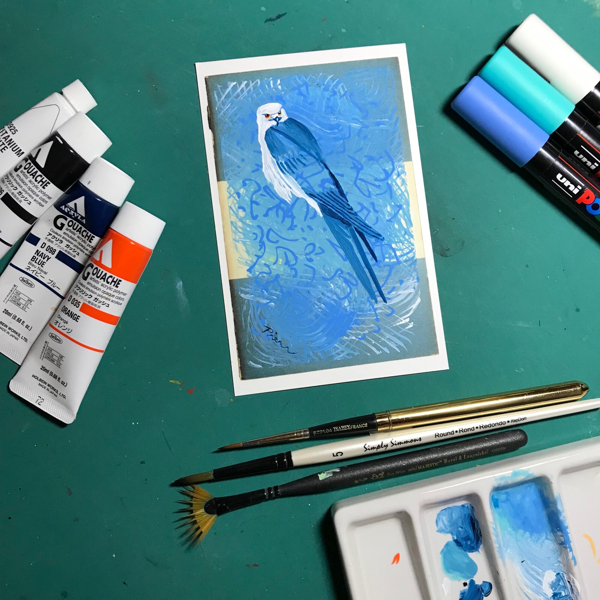 • Original Painting - (not a print)- 4x6-inches - using acrylic-gouache (gooWASH - opaque watercolor), on a vintage Penguin book postcard