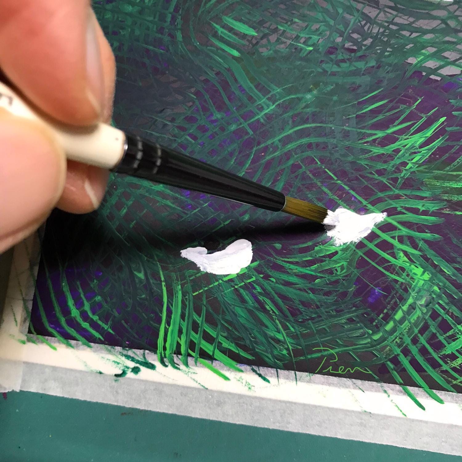 • signed lower right corner, black paint
