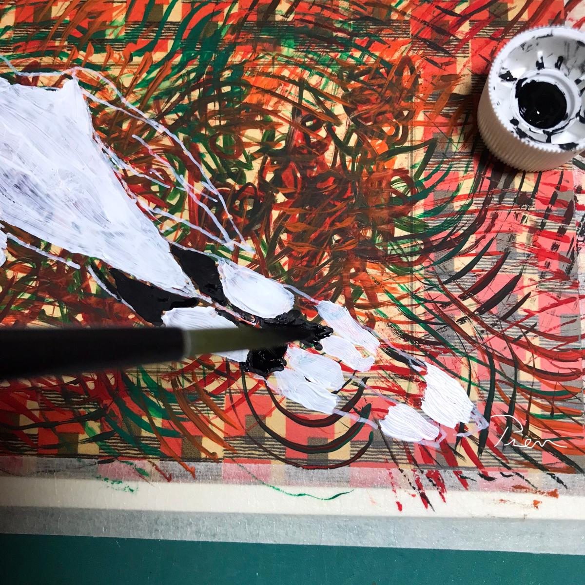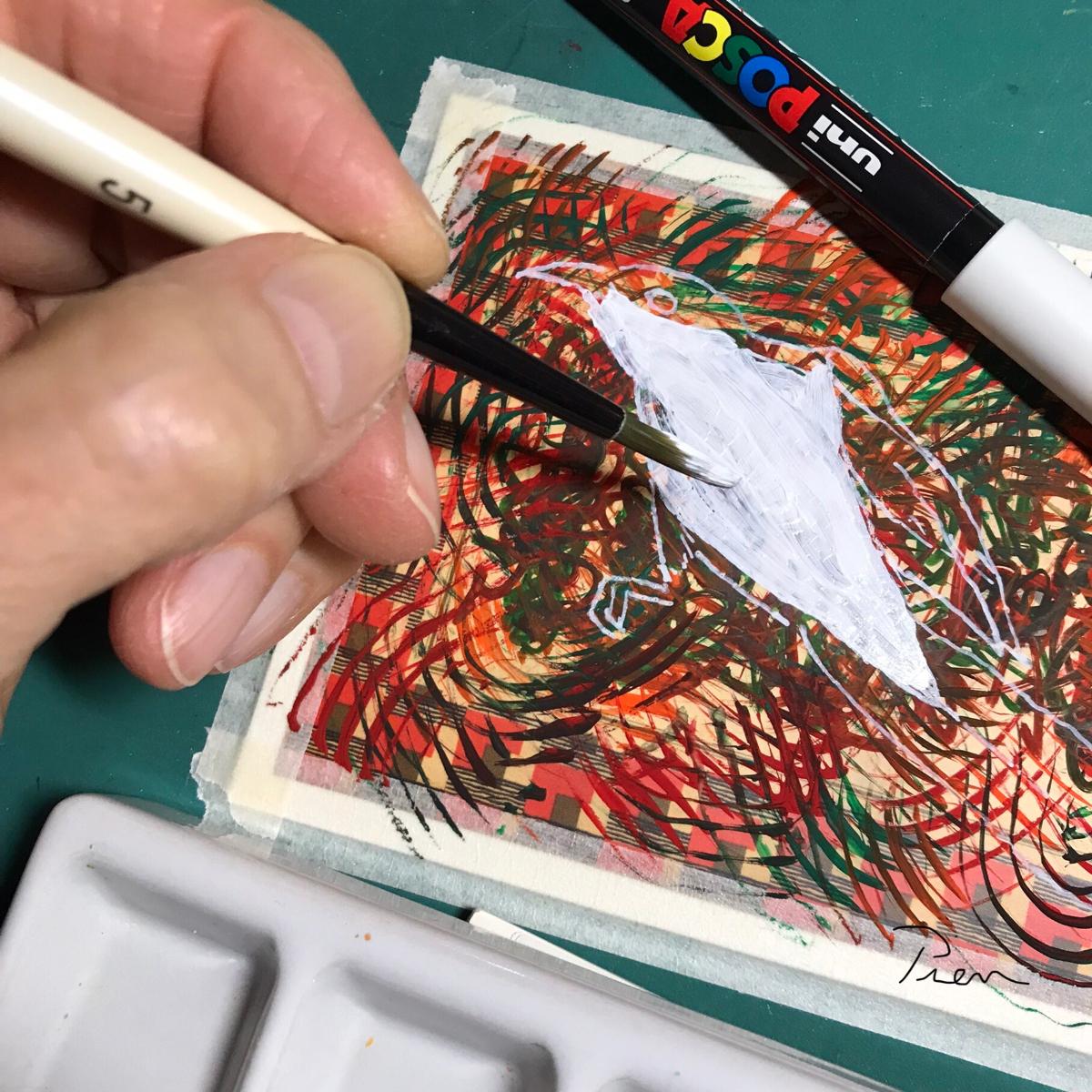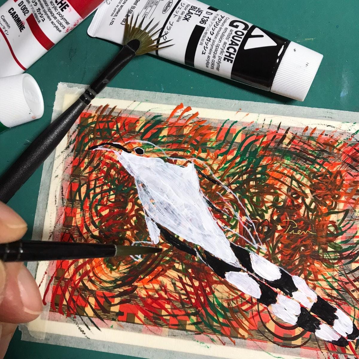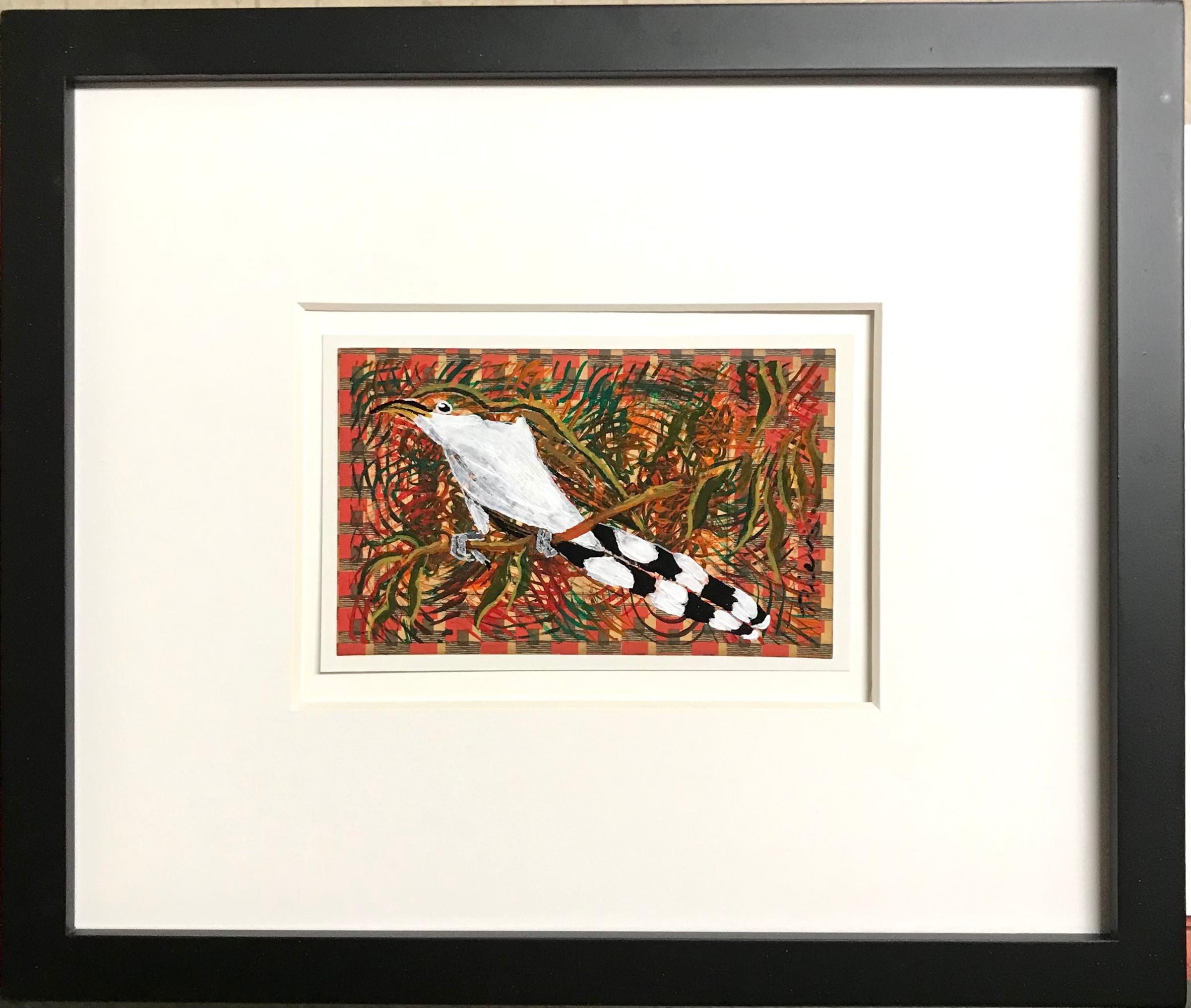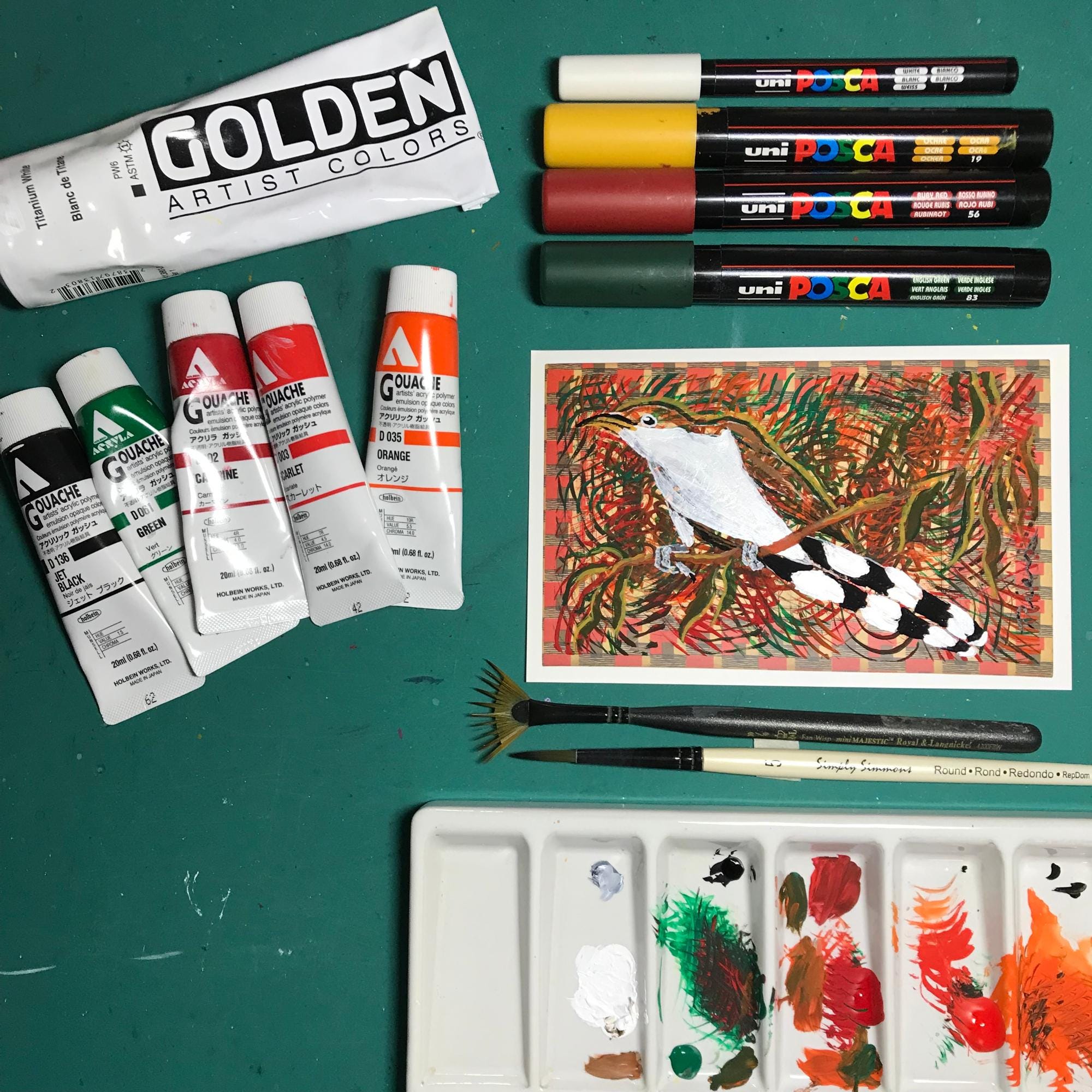 • Original Painting - (not a print) - 6x4-inches - of a Cuckoo in a willow tree - using Posca paint pens & acrylic gouache (gooWASH - opaque watercolor), on a vintage Penguin book postcard