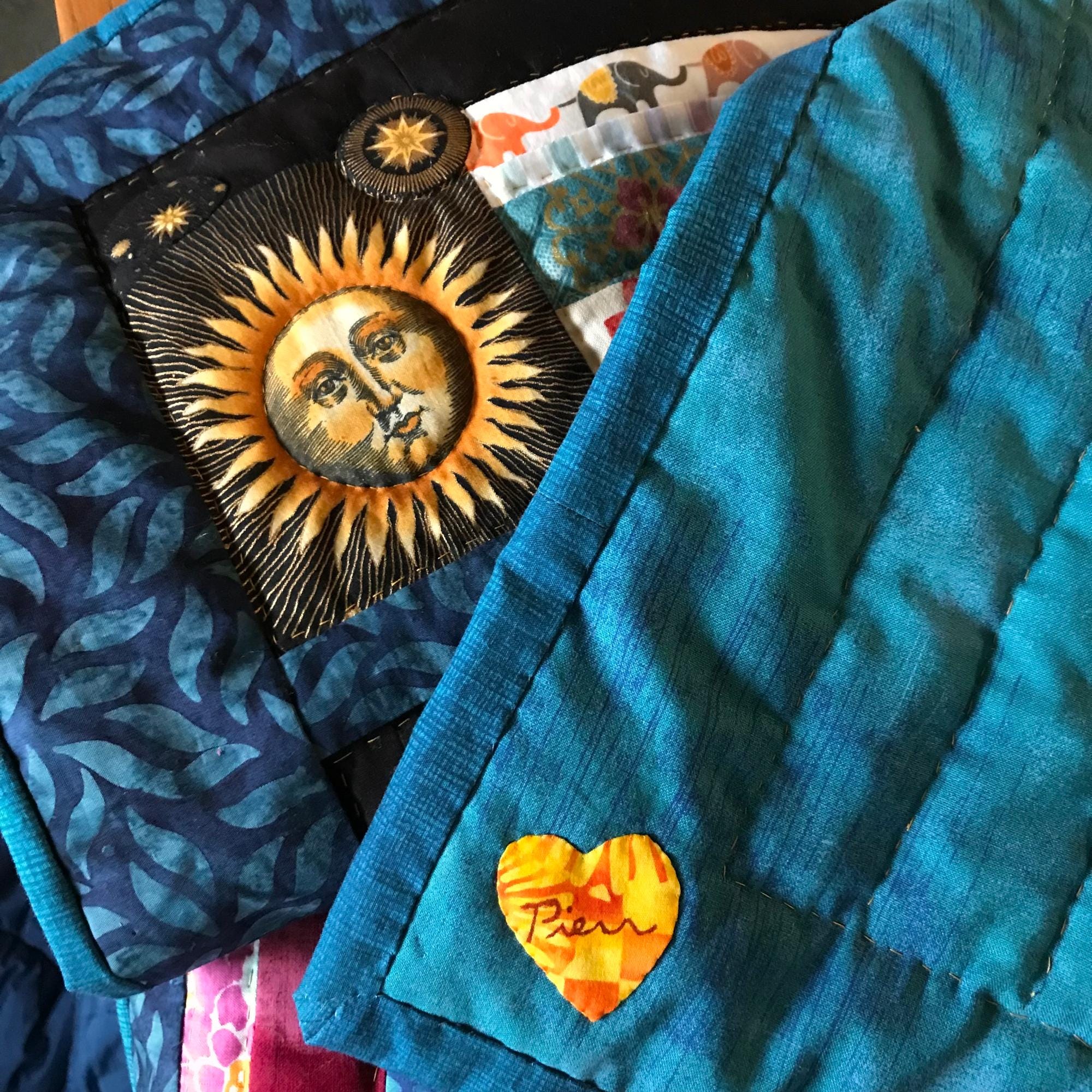 • Photos 4, 12 = sun burst fabric scrap with a few appliquéd stars