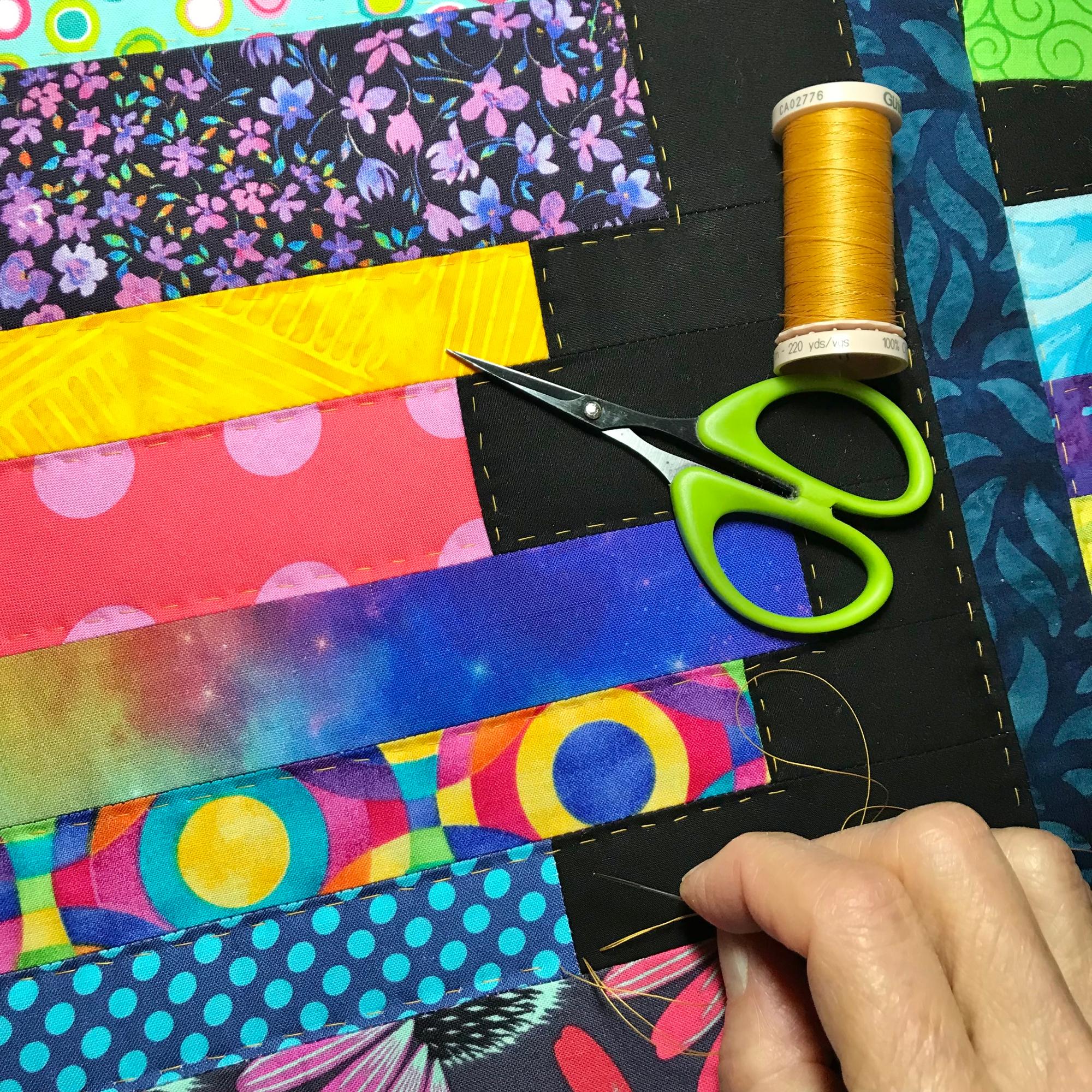 • And Time: 10 days = 6 days - 6 hrs/day to create the top; 4 days to hand-quilt and sew the binding on and hand-stitch it around the back.