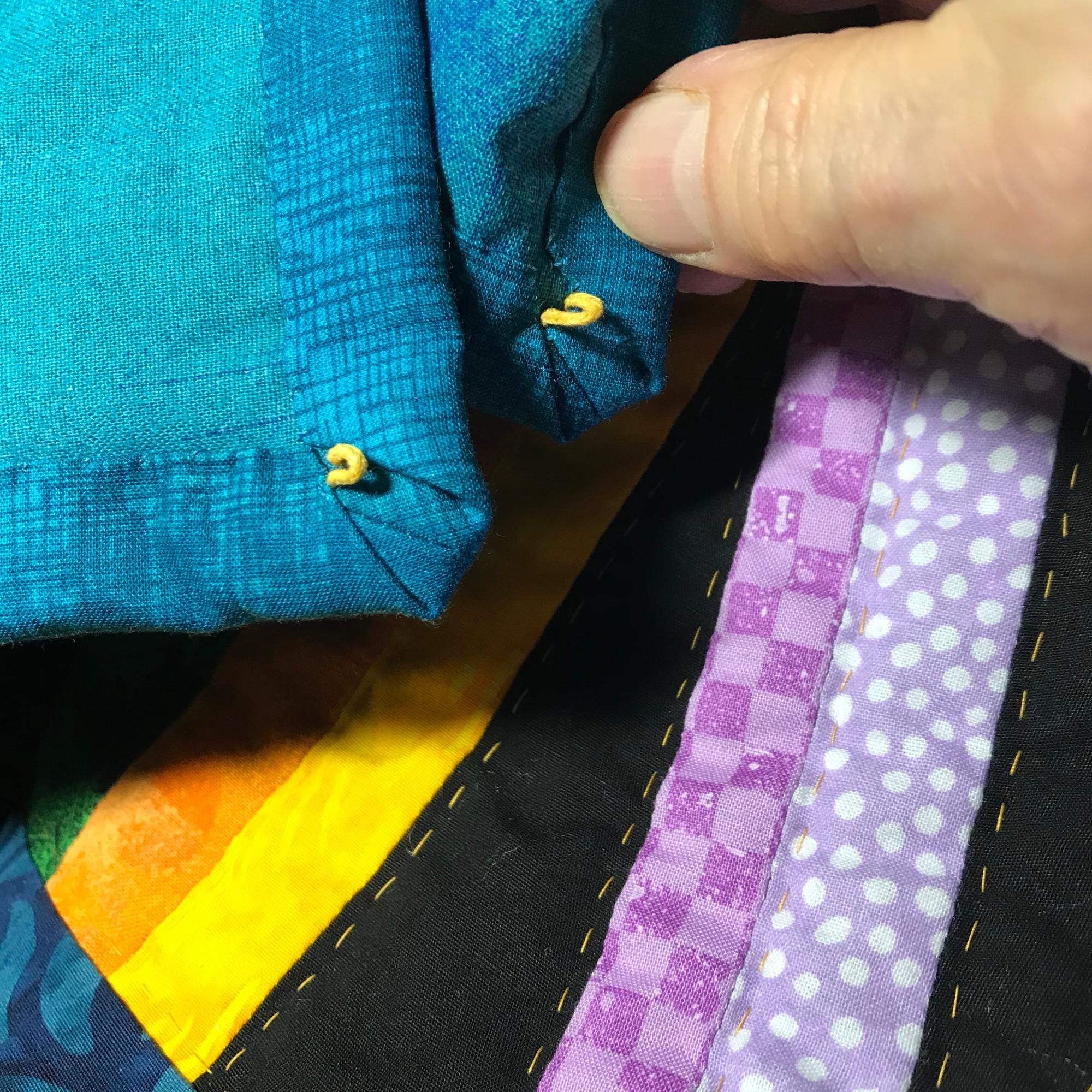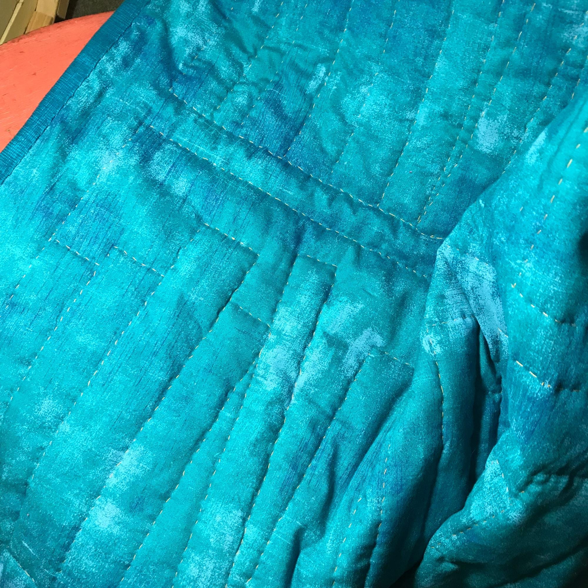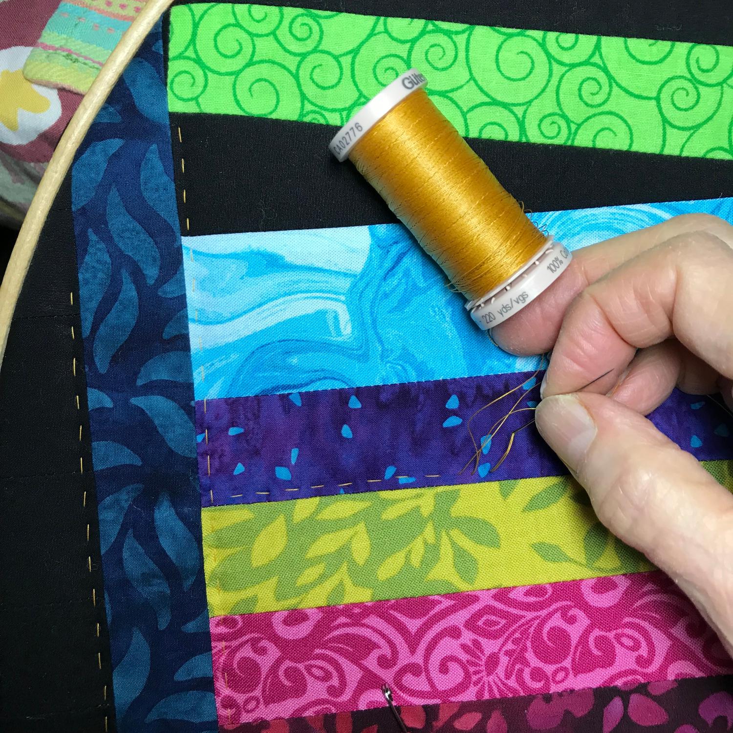 • hand-quilted w/ golden yellow cotton quilting thread by Gütermann (Photos 10, 11)
