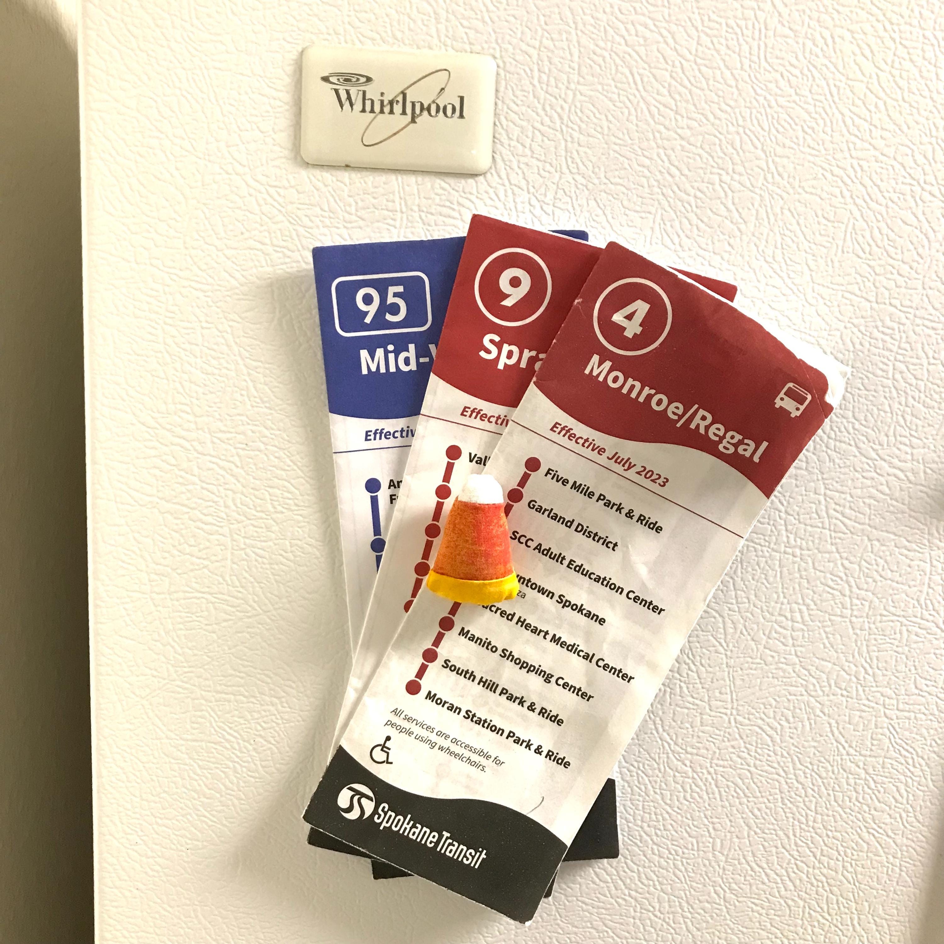 • (Photo 2) = Candy Corn magnet holding three bus schedules - or 22 pieces of thin paper