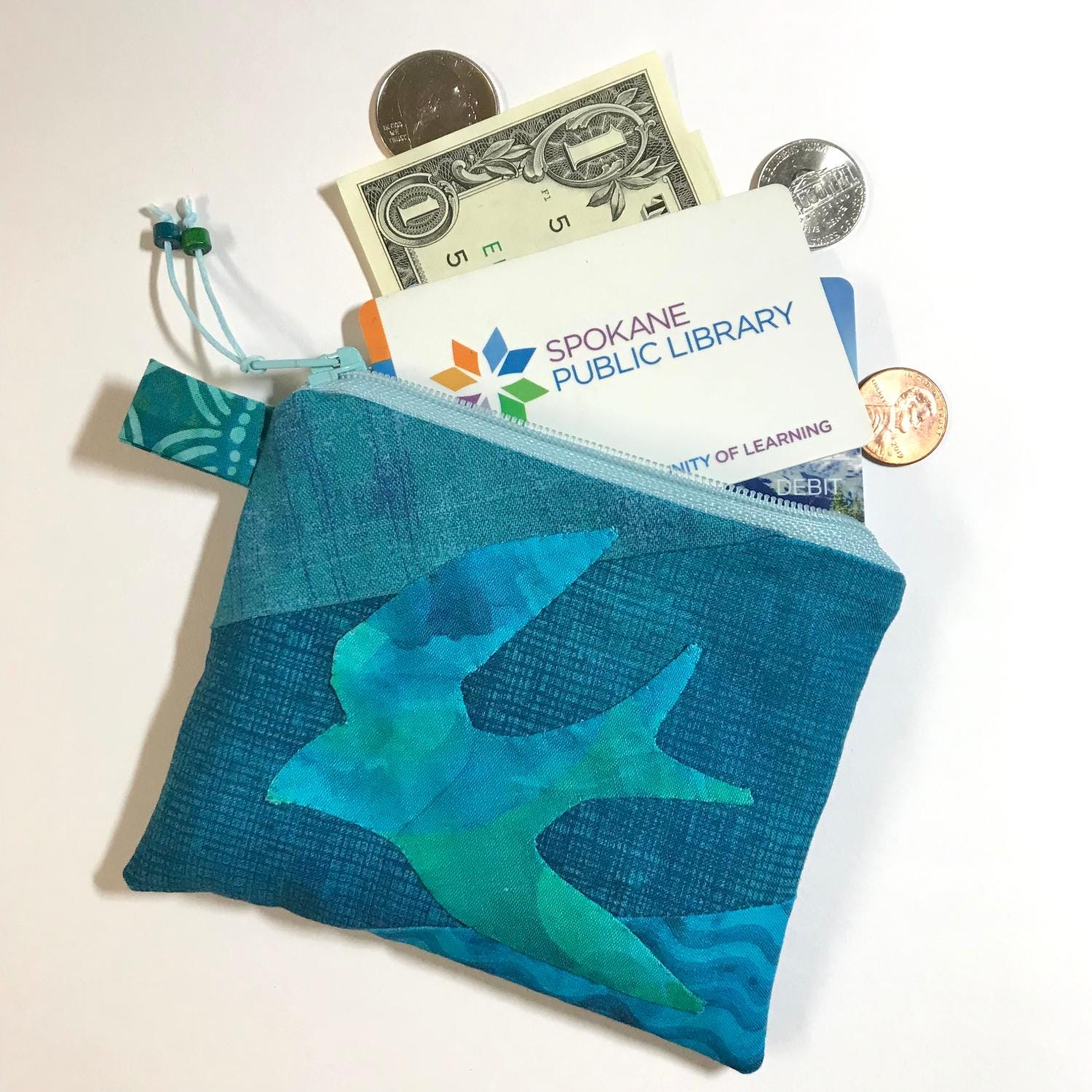 ~ aqua needle-turn appliquéd Swallow (Photos 1, 4)