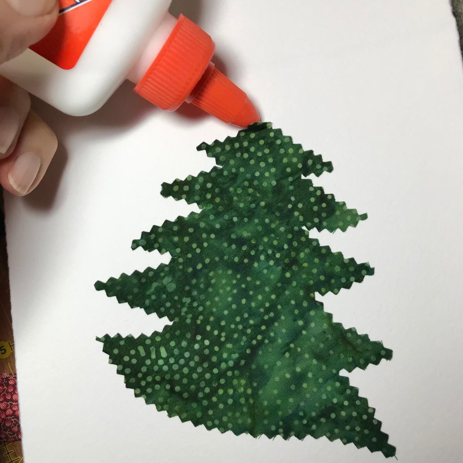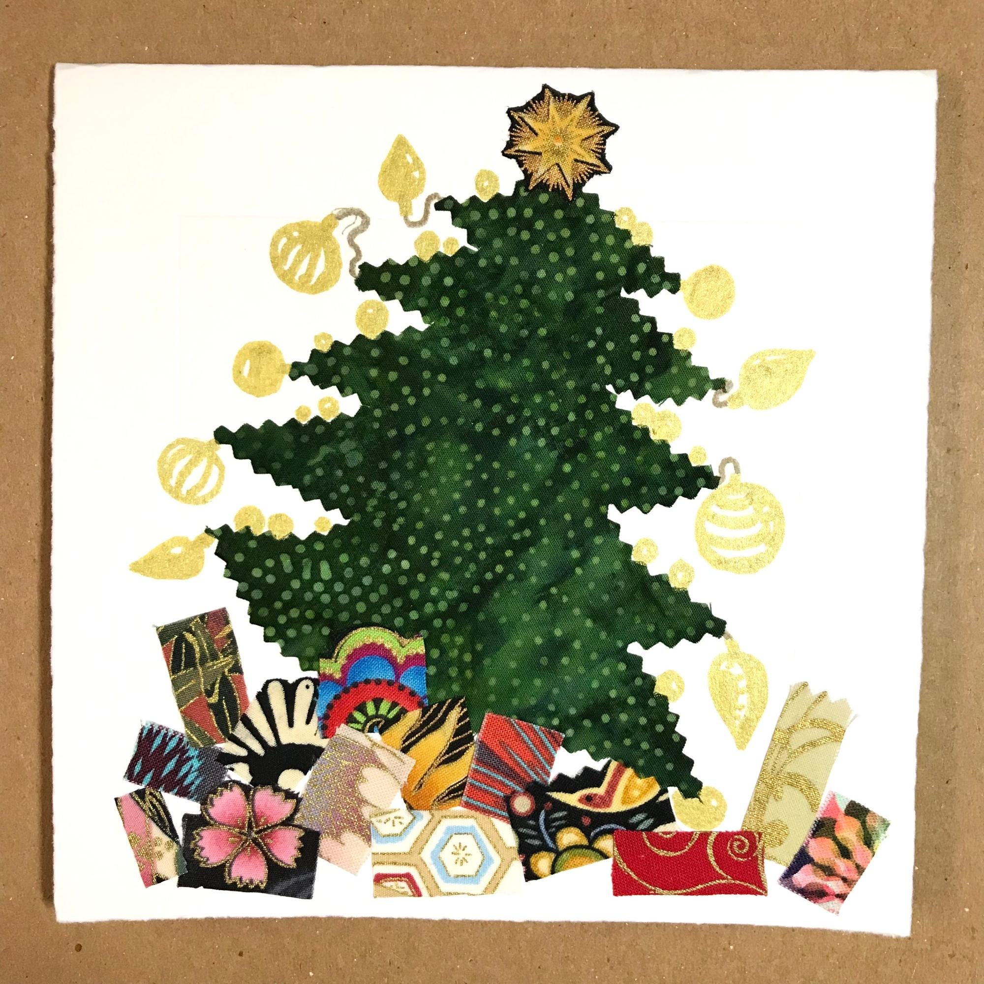 • tree, star & presents = hand-trimmed fabrics glued to card (Photo 4)