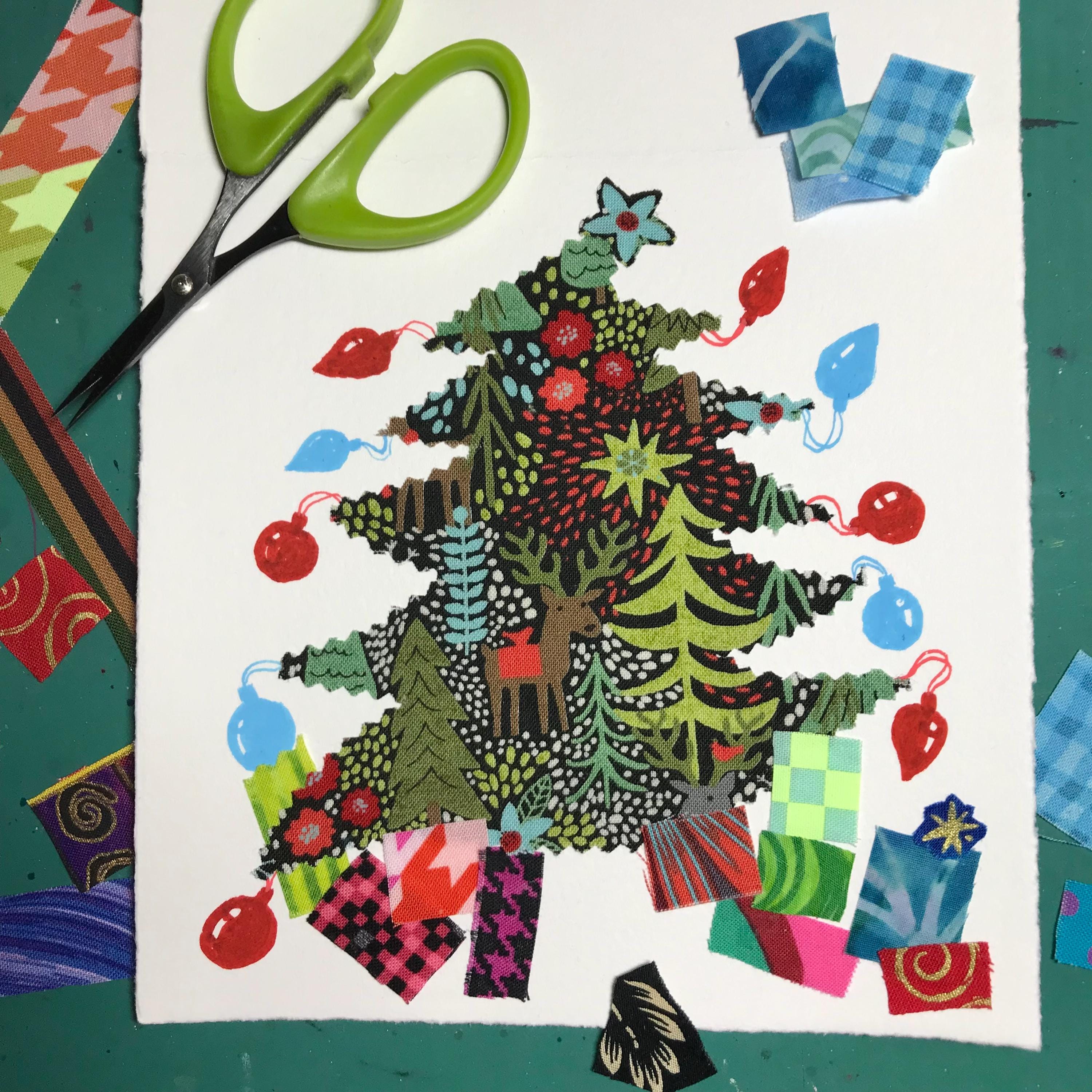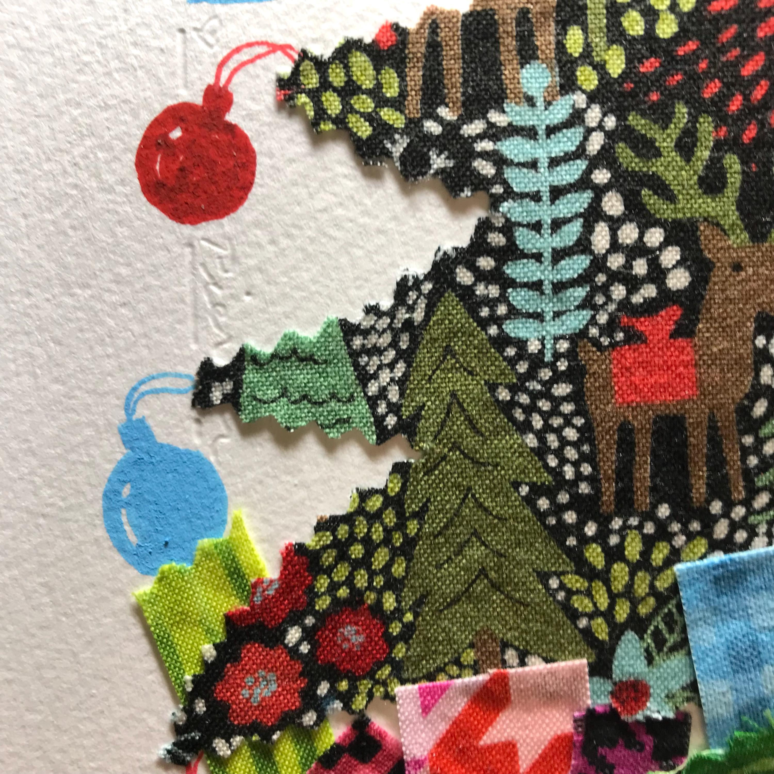 • presents, tree & star = hand-trimmed fabric scraps glued to card (Photo 5)