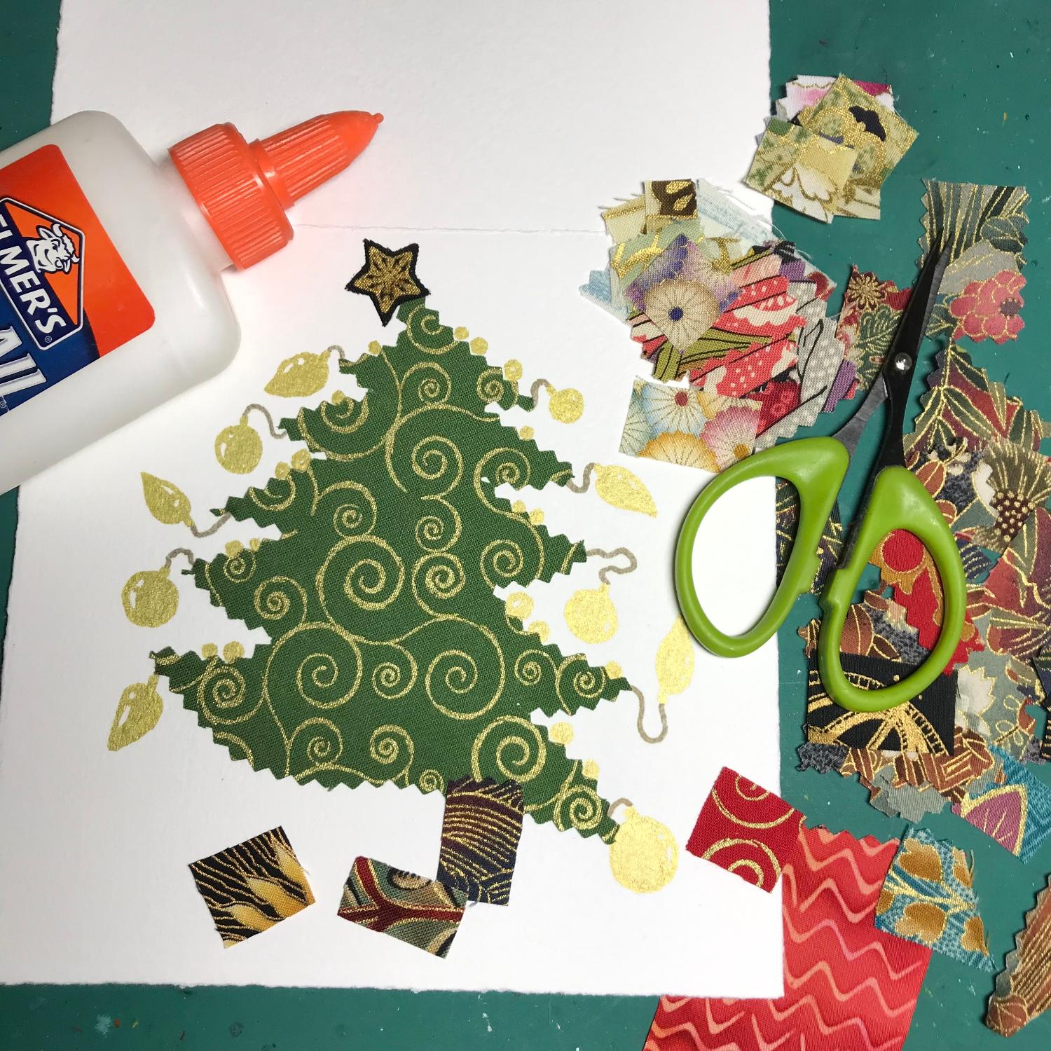 • presents, tree & star = hand-trimmed fabrics glued to card (Photo 5)