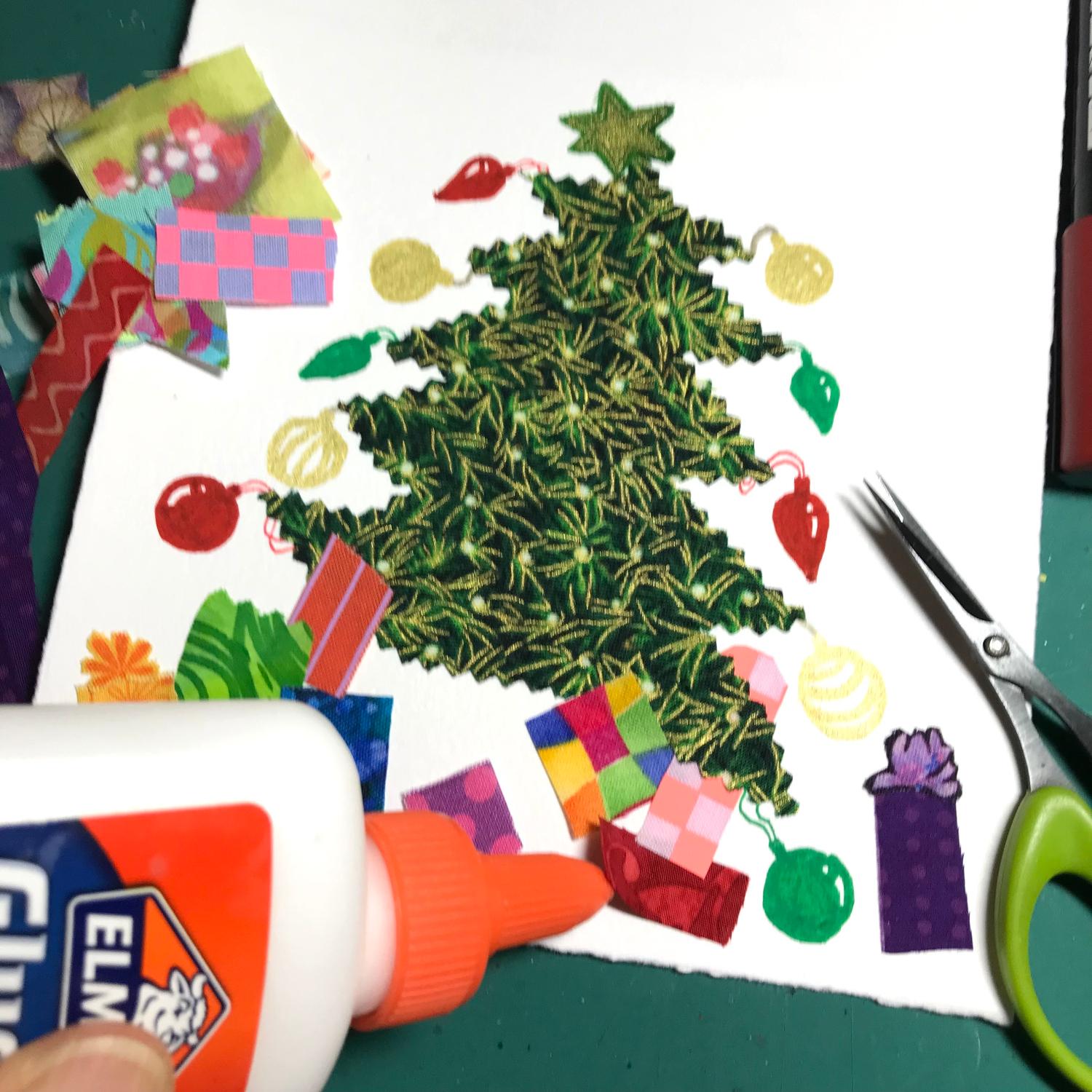 • presents, tree & star = hand-trimmed fabrics glued to card (Photo 4)