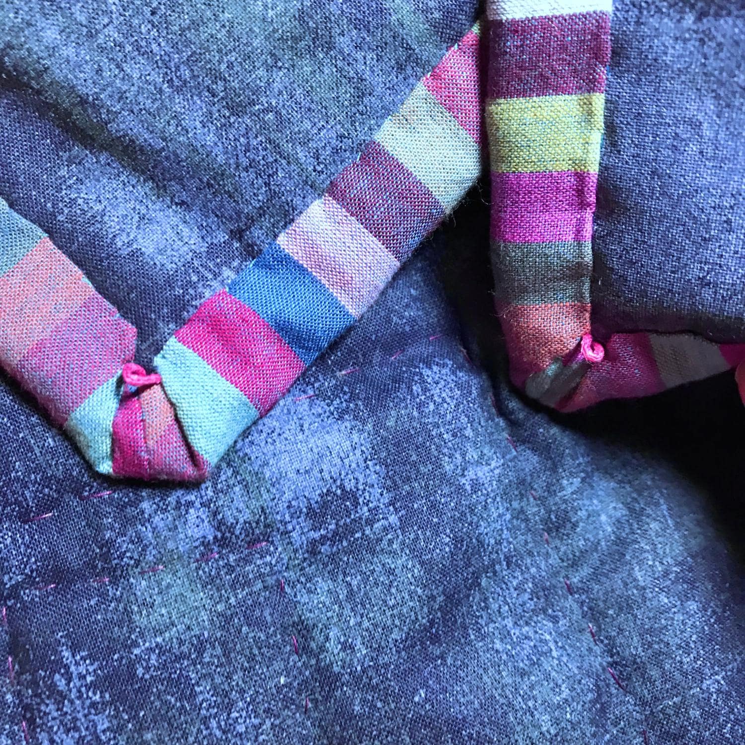 • Photo 2 = fuchsia cotton corded loops in top corners for easy hanging as a wall tapestry