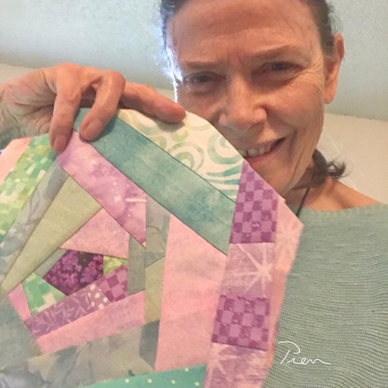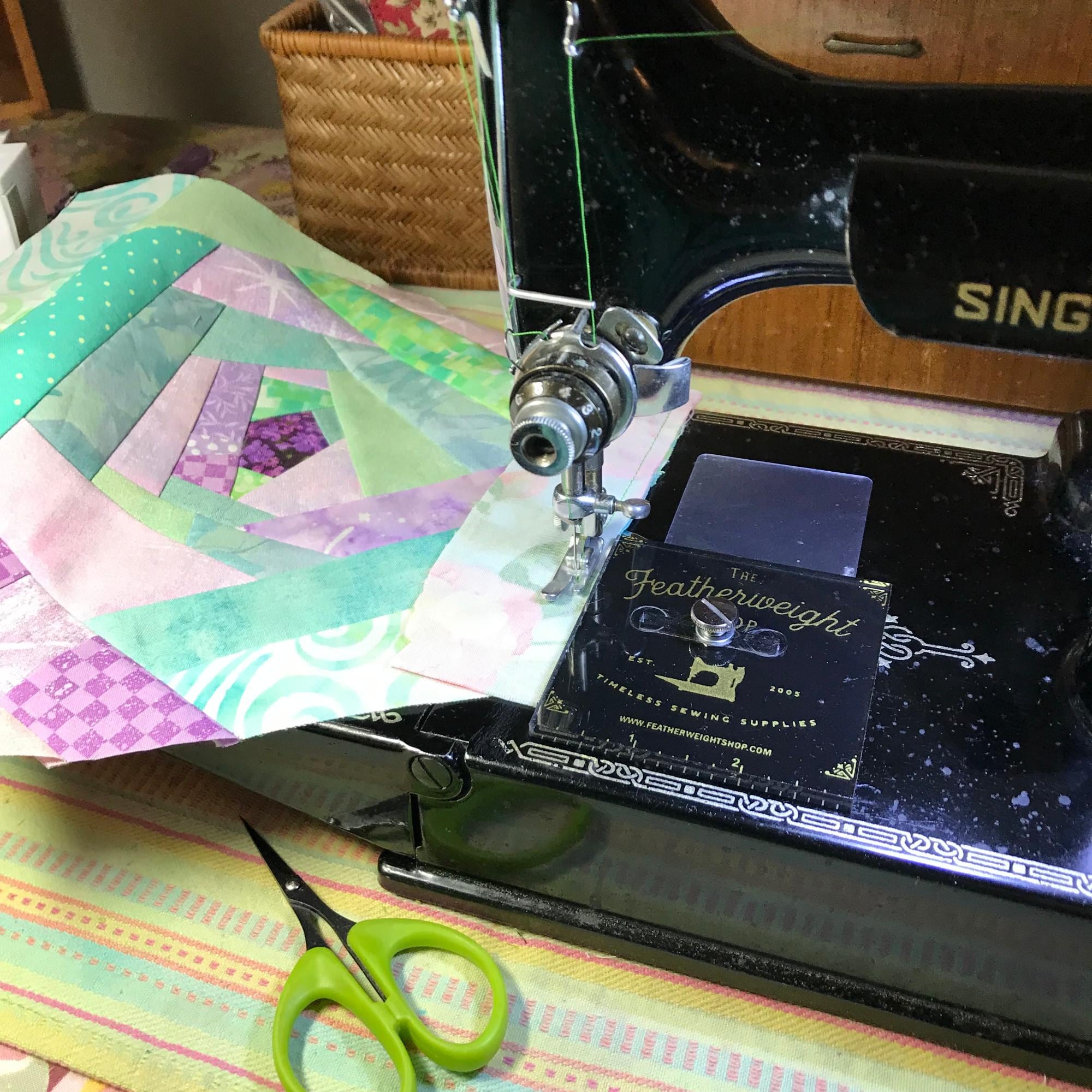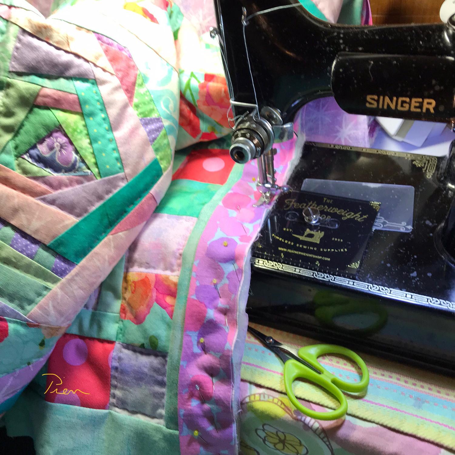 • machine-pieced on my 1950 Singer Featherweight (Photos 5, 7, 13)