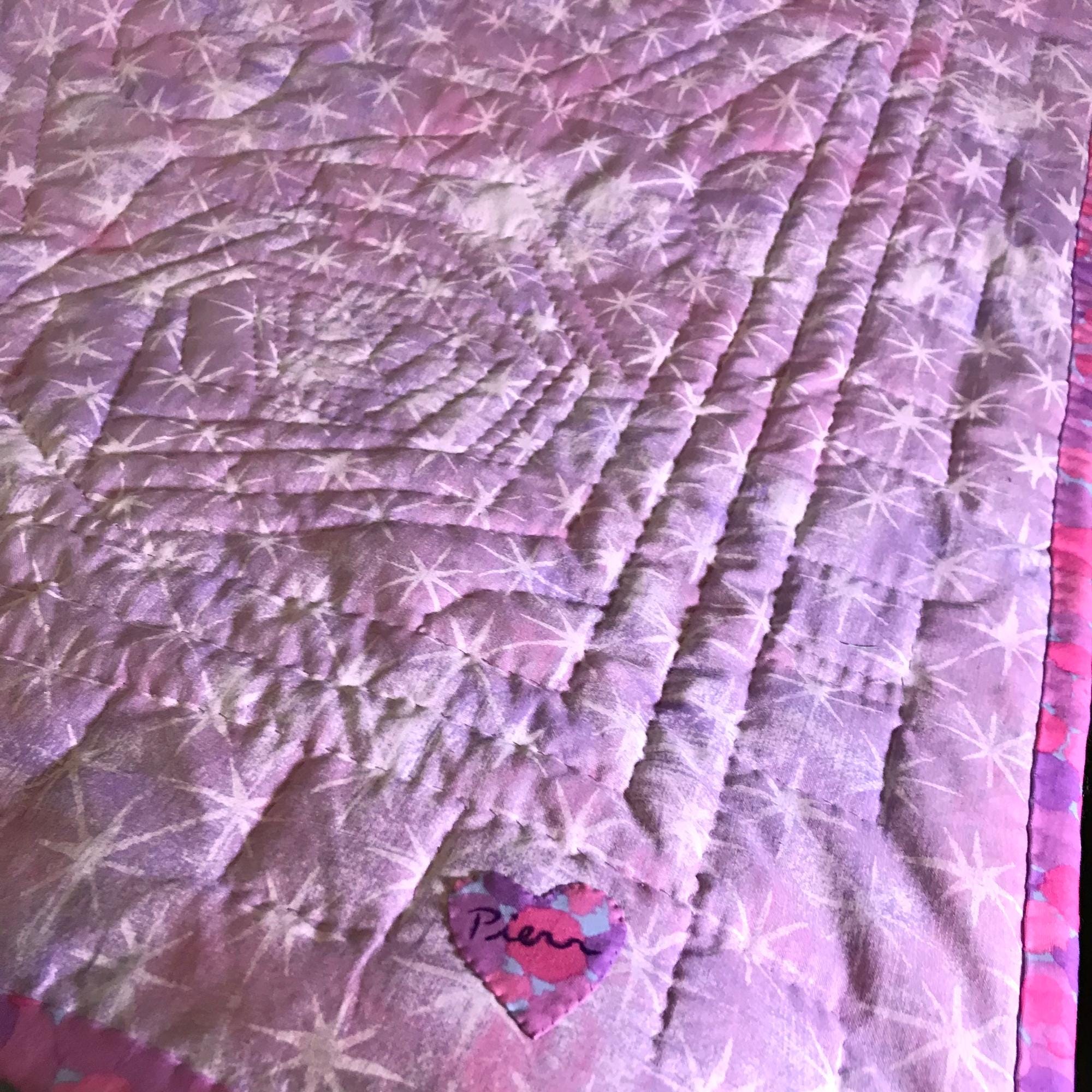 • signed "Pierr" in purple washable textile paint - on an appliquéd heart on backing (Photo 2)